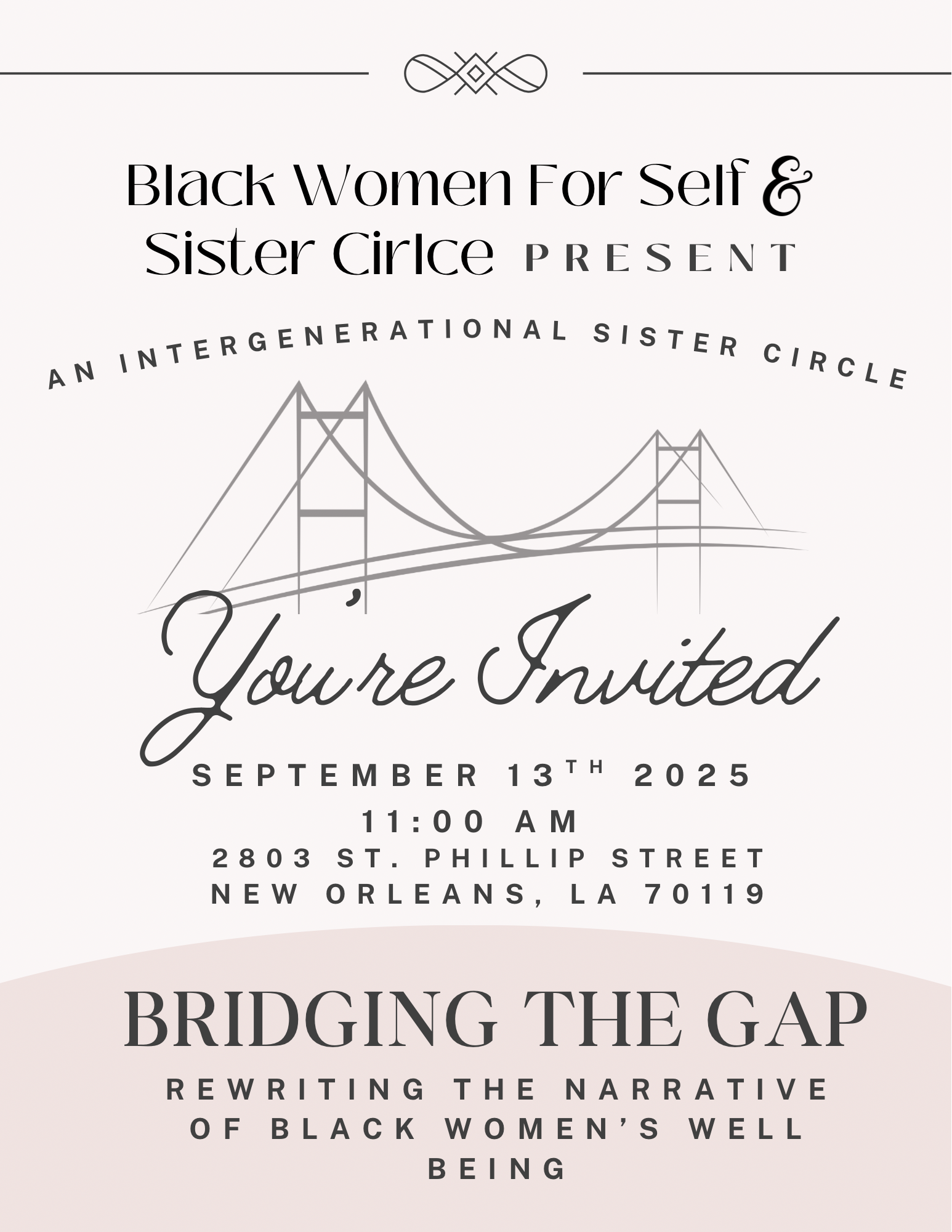 Together, we’ll share stories, exchange perspectives, and build bridges between generations so that the next chapter of Black womanhood centers our wholeness, health, and radical self-love.